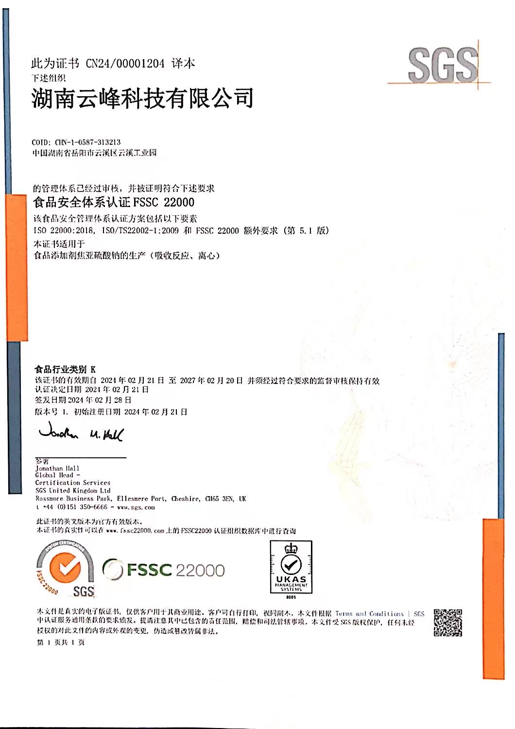 湖南云峰科技有限公司(以下簡稱云峰科技),是由長沙湘岳化工責(zé)任有限公司全額投資以生產(chǎn)焦亞硫酸鈉、亞硫酸鈉等亞硫酸鹽為主營業(yè)務(wù)的高科技企業(yè),具有六十多年的生產(chǎn)歷史,同時也是焦亞硫酸鈉的國家標(biāo)準(zhǔn)制定參與者。在行業(yè)內(nèi)具有很大的影響力。現(xiàn)有職工八十余人。具有優(yōu)良的經(jīng)營管理團隊和成熟的生產(chǎn)技術(shù)隊伍。由多位在化學(xué)、化工行業(yè)擁有豐富工作經(jīng)驗的工程師及技術(shù)員團隊組建而成,致力于亞硫酸鹽產(chǎn)品的研發(fā)、生產(chǎn)和銷售。2020年公司對生產(chǎn)設(shè)備、安環(huán)設(shè)施及工業(yè)技術(shù)等進行了大規(guī)模的升級改造,使焦亞硫酸鈉和亞硫酸鈉的生產(chǎn)工藝更加先進,技術(shù)更成熟,產(chǎn)品質(zhì)量更優(yōu)良。無論在生產(chǎn)工藝、設(shè)備、產(chǎn)品質(zhì)量、清潔生產(chǎn)、節(jié)能環(huán)保和員工素質(zhì)方面,均處于行業(yè)領(lǐng)先地位。公司的主導(dǎo)產(chǎn)品“云峰”牌焦亞硫酸鈉,歷史悠久,深受國內(nèi)外客戶信賴,產(chǎn)品遠銷東南亞、歐美、非洲、南美洲等20多個國家和地區(qū),產(chǎn)品供不應(yīng)求。